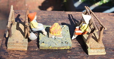 SWEET GROUPING FROM "PUTZ" SET--BISQUE BOYS FISHING -WOODEN BRIDGE