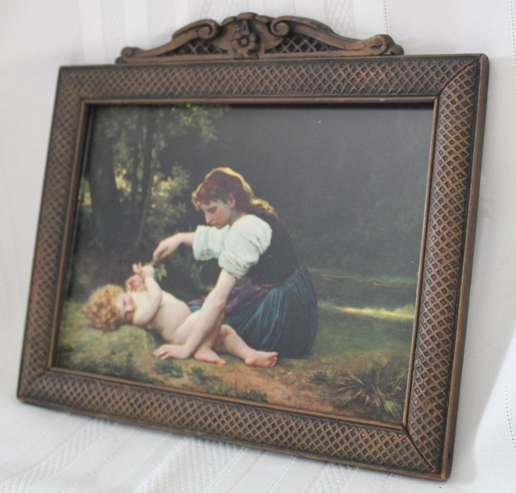 Title (ebay affiliate link): Vintage Antique Picture Frame wood with carved floral design at top
