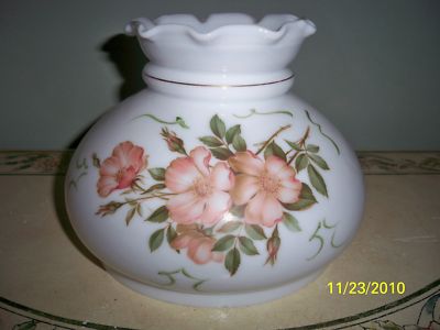 Vintage Milk Glass Lamp Shade Floral Peach 7 Inch Base