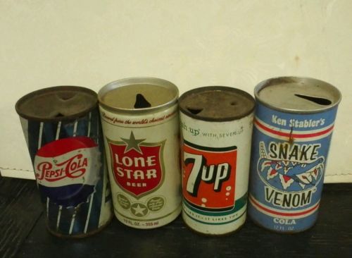 Title (ebay affiliate link): Lot of 4 vintage soda/beer cans. Lonestar, Pepsi, 7up, Ken Stabler snake venom
