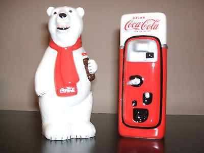 Coca Cola Salt and Pepper Shakers - NEW - Polar Bear & Vending Machine - Kitchen