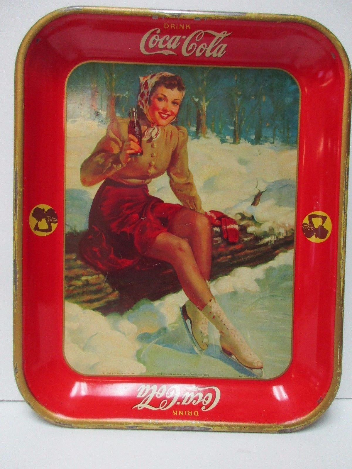 Title (ebay affiliate link): Vintage 1941 Drink Coca Cola Serving Tray Girl with Ice Skates VGC