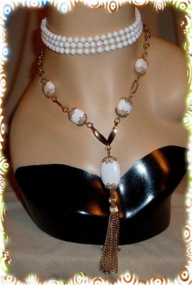 VINTAGE MILK GLASS NECKLACES~GLASS PENDANT + TASSEL~LOT