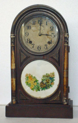 ANTIQUE COLOR FLORAL GLASS PANEL COLUMN MANTLE CLOCK