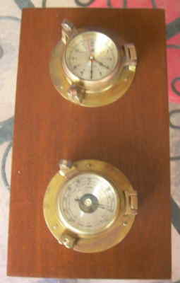 SHIPS' TIME BRASS WEATHER STATION CLOCK BAROMETER