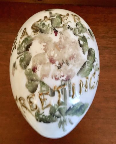 Antique Milk Glass Easter Egg Pale Pink Roses Flowers