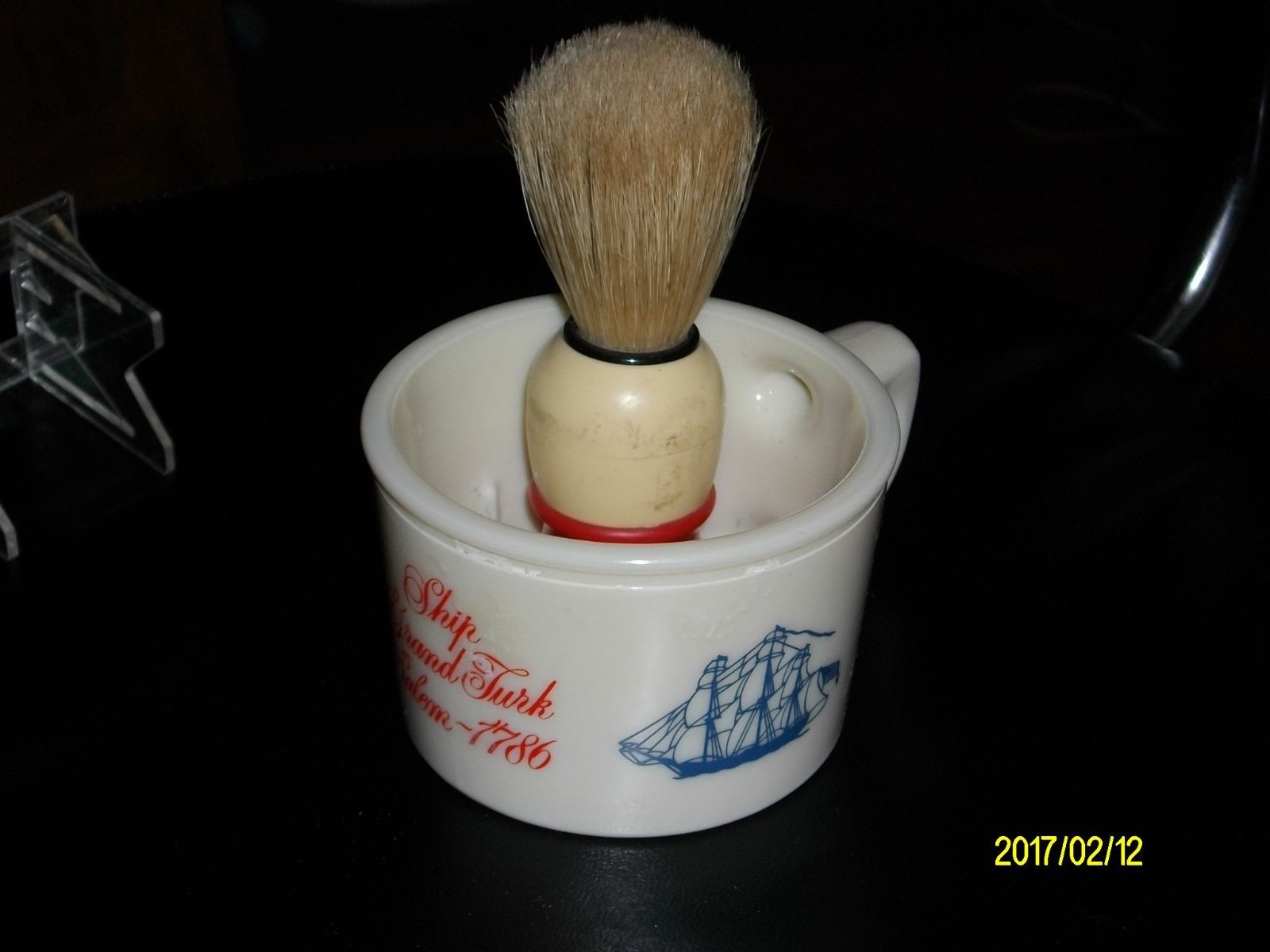 Title (ebay affiliate link): VINTAGE SHULTON OLD SPICE MILK GLASS SHAVE MUG W/ BRUSH GRAND TURK SALEM 1786