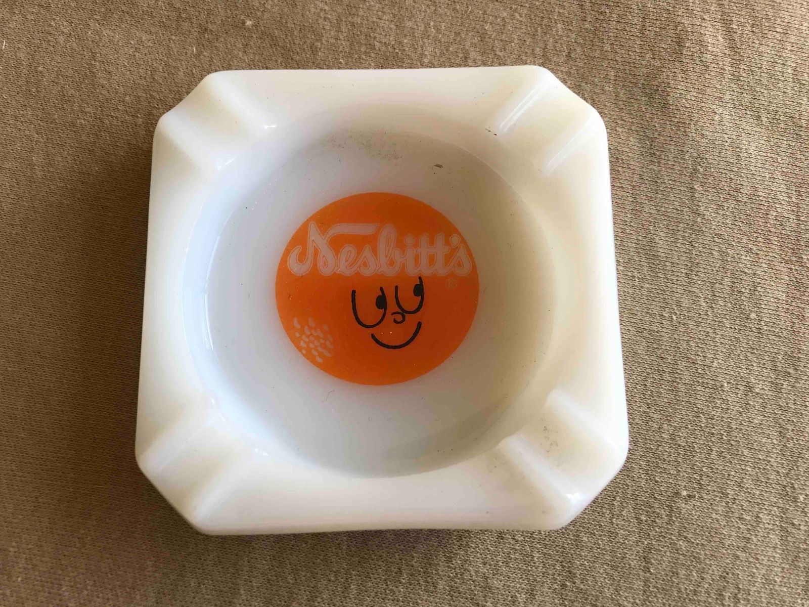 Title (ebay affiliate link): Vintage Nesbitt''s of California Orange Soda Milk Glass Advertising Ashtray