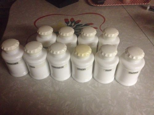 Ten Vintage Spice Jars Milk Glass 4 Inches Tall