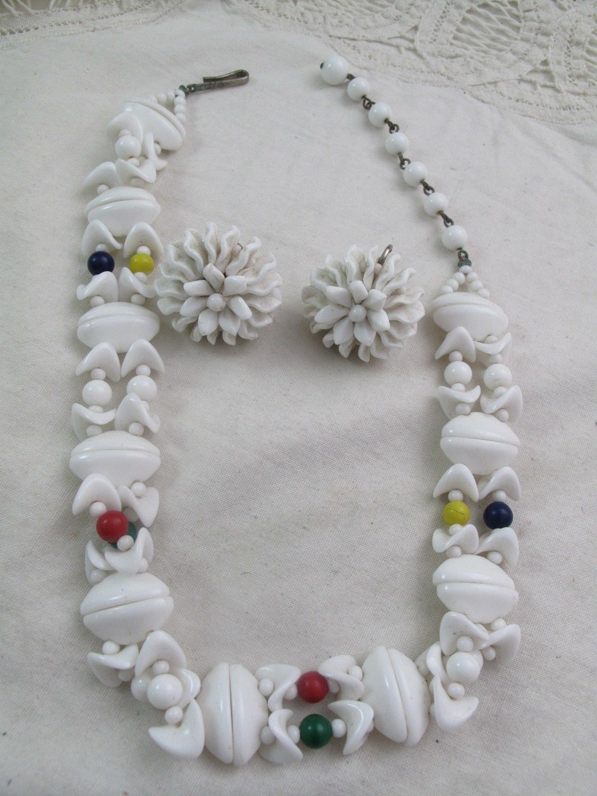 Vintage Molded Milk Glass Bead Necklace and Earrings