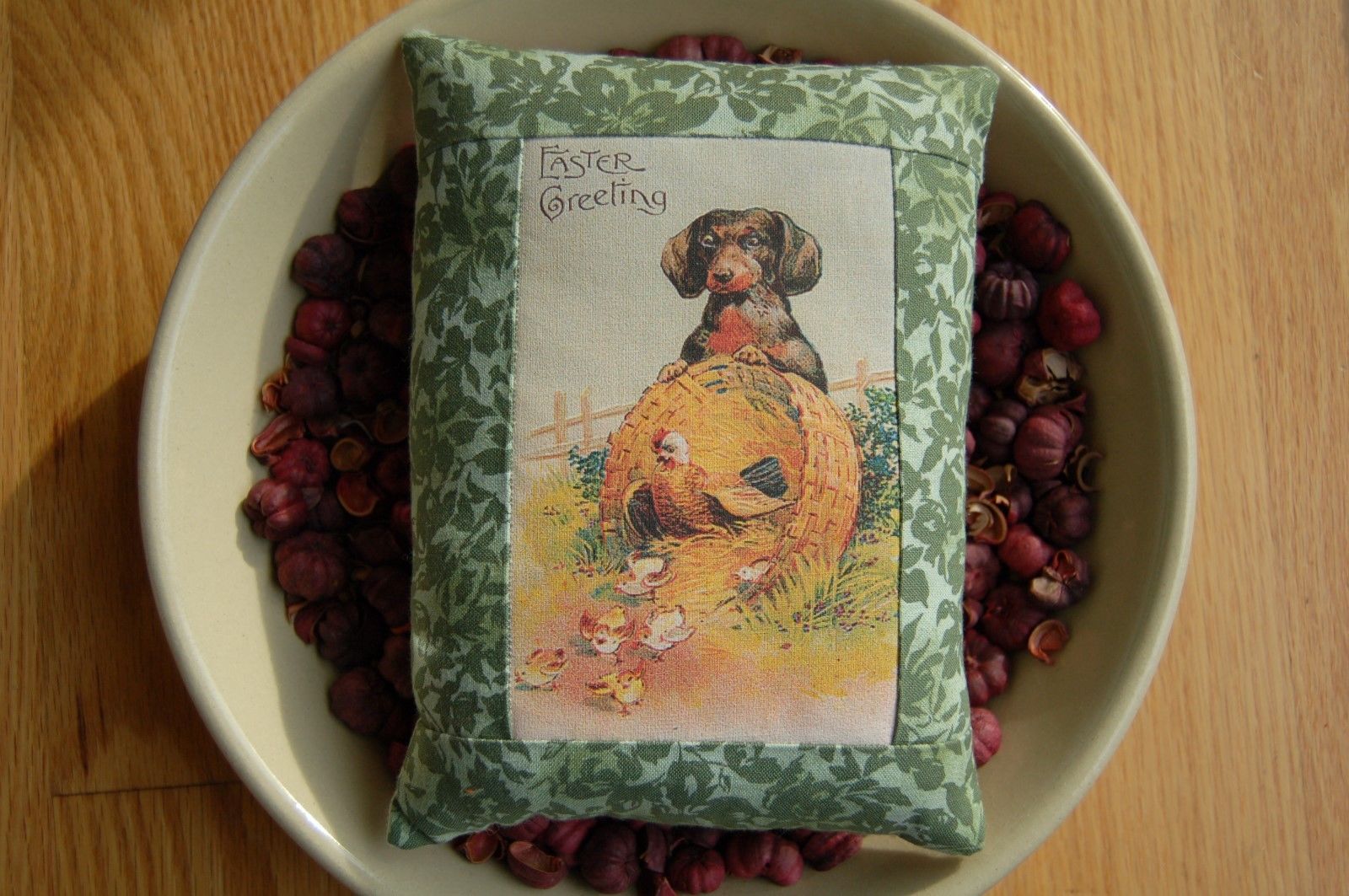 Title (ebay affiliate link): Primitive Dachshund Easter Postcard Picture Pillow