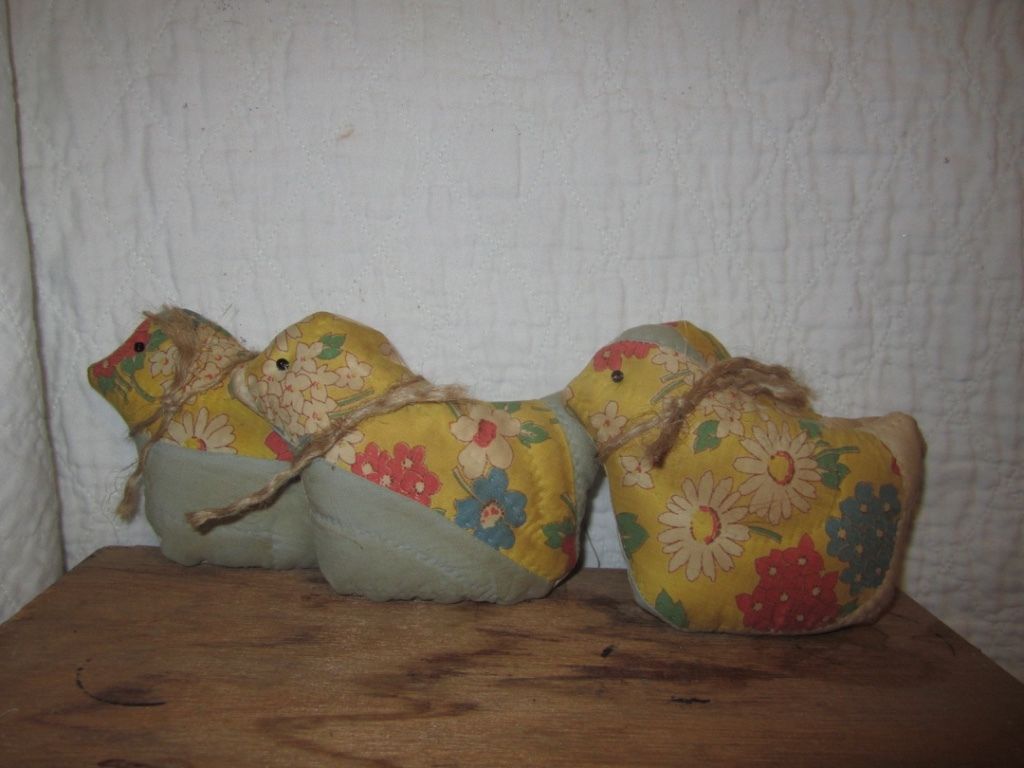 Primitive chick bowl fillers - vintage quilt - blue/yellow/pink - Easter/Spring