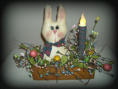 Easter!! Primitive Bunny & Berries in Old Cheesebox Lamp!