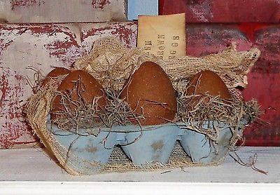 Primitive Grungy Brown Eggs*Sky Blue Carton*Pantry Goods*Cupboard Tuck