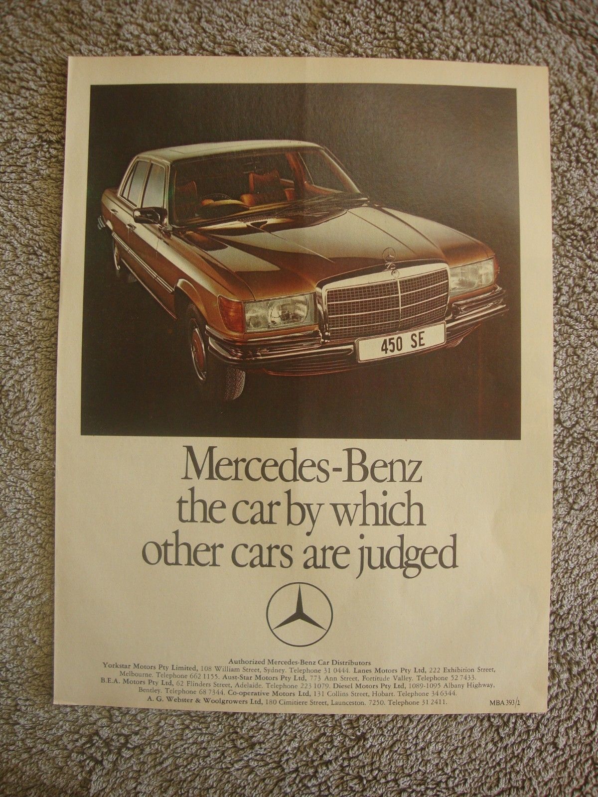 Title (ebay affiliate link): 1975 Mercedes-Benz 450 SE Sedan Aussie Original Magazine Advertisement