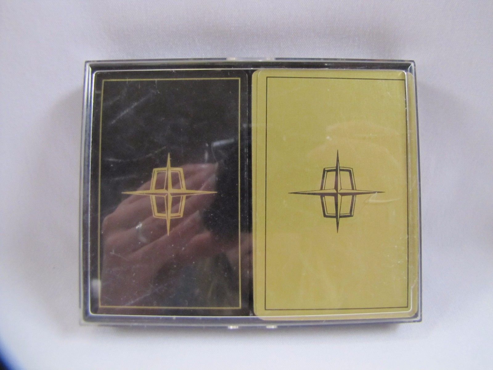 Title (ebay affiliate link): Vintage Lincoln Logo Playing Cards Double Set with Box Arrco Duratone Chicago