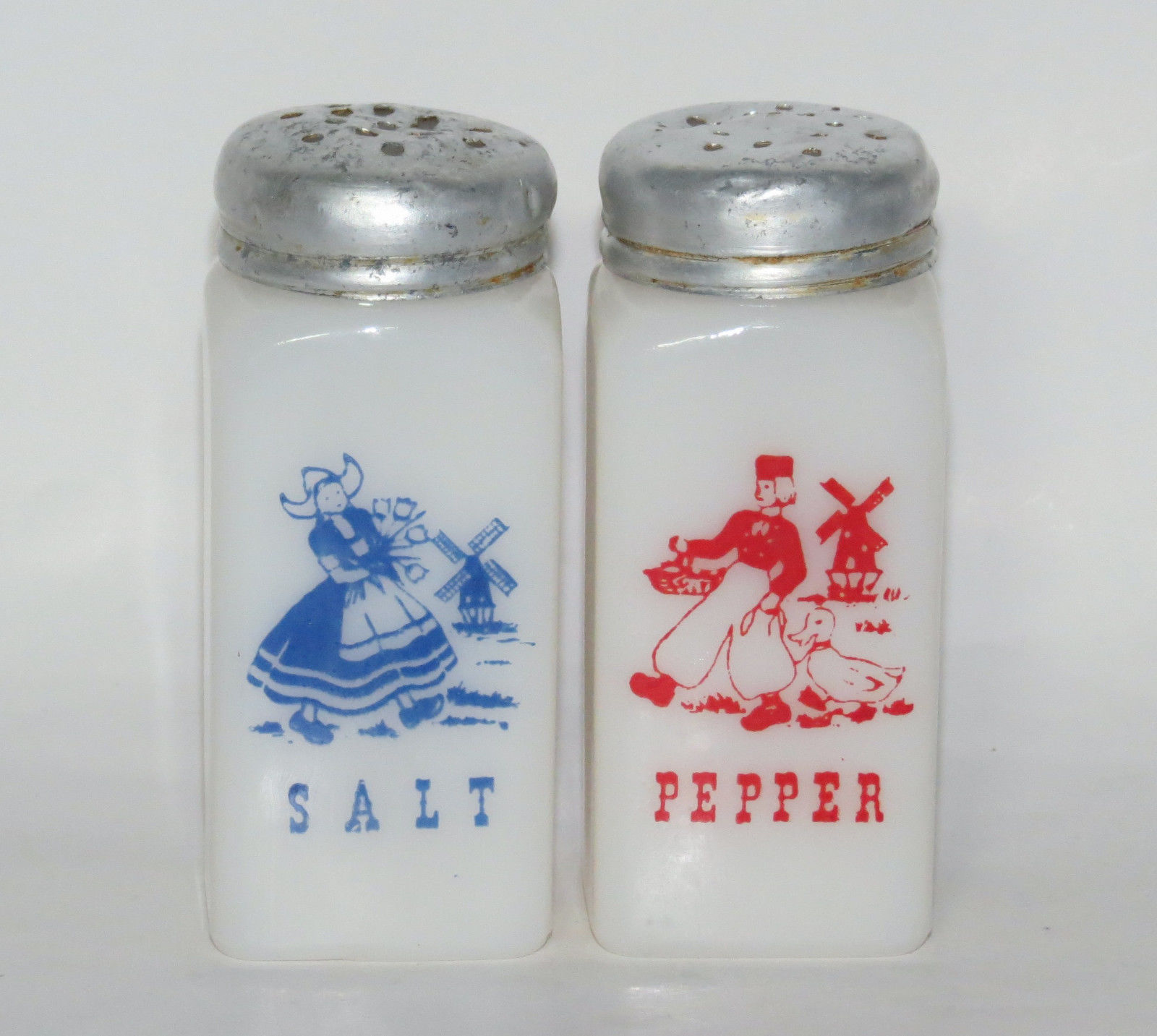 Title (ebay affiliate link): Vtg Milk Glass Dutch Design SALT & PEPPER Shakers Advertising Oxford Hardware NJ