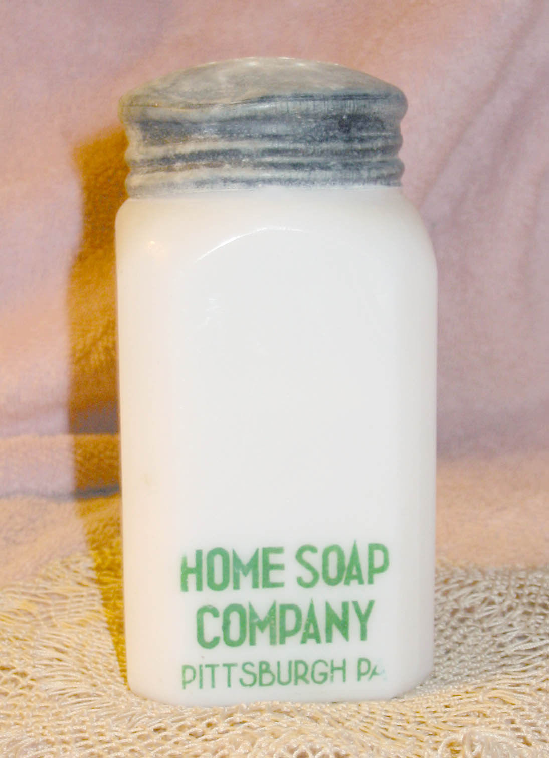 Antique Vtg AH White Milk Glass Home Soap Lg Kitchen Flour Shaker Pittsburgh PA