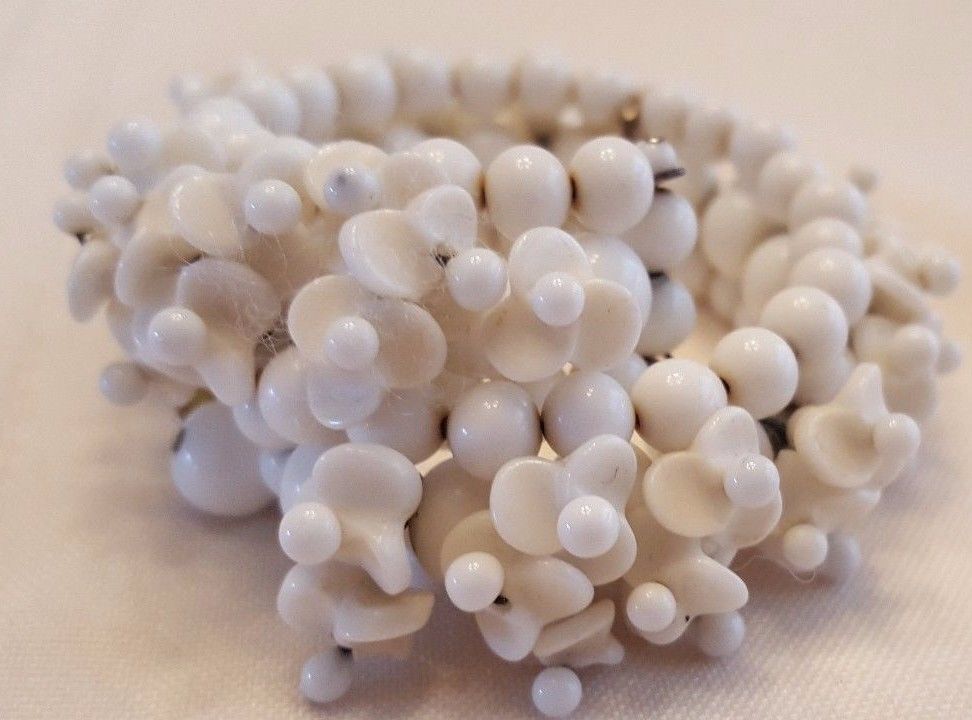 Title (ebay affiliate link): Vintage Signed MIRIAM HASKELL White Milk Glass Flower Coil Bracelet A BEAUTY