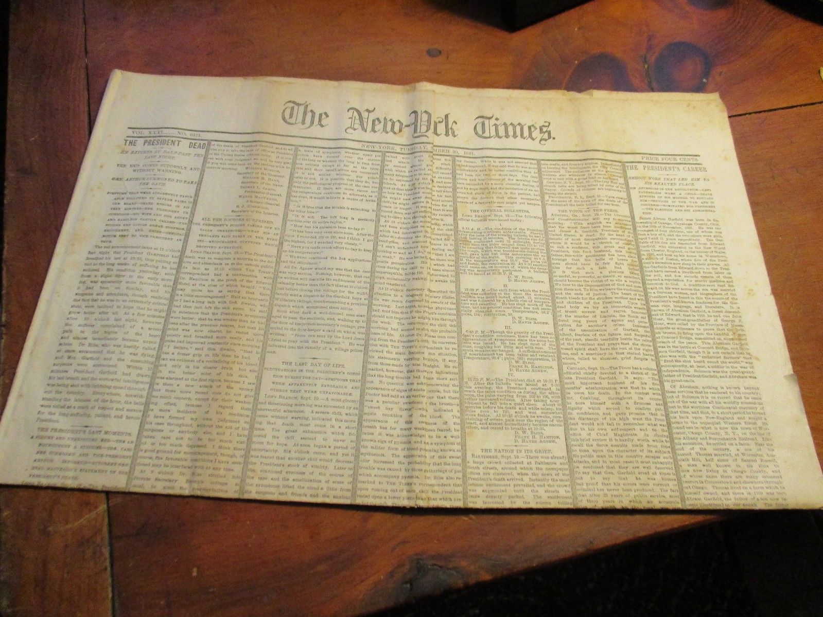 September 20 1881 New York Times Garfield Dead newspaper