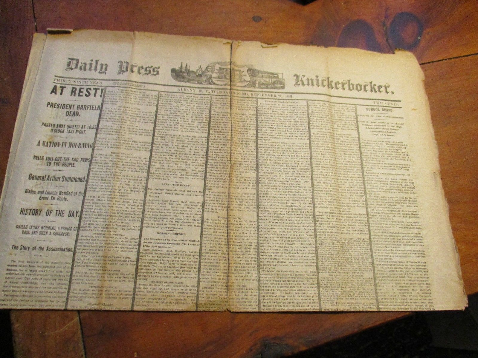 September 20 1881 Daily Press Knickerbocker Garfield Dead newspaper