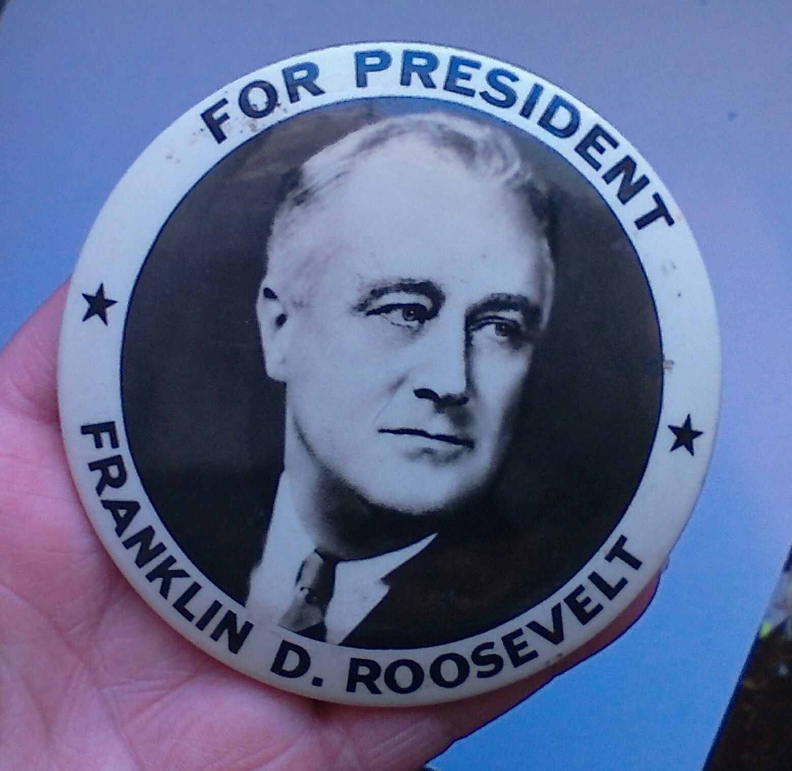 Title (ebay affiliate link): FOR PRESIDENT FRANKLIN D ROOSEVELT 3 1/2" PORTRAIT PIN POLITICAL CAMPAIGN