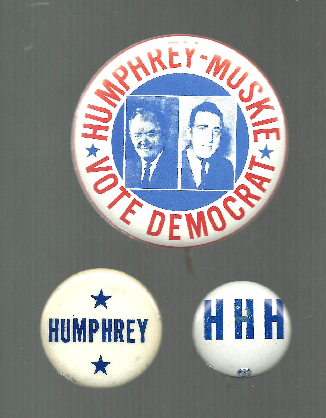 Lot of 3 different Hubert Humphrey presidential campaign buttons