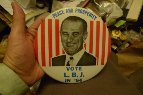 Title (ebay affiliate link): Rare 1964 Peace And Prosperity Vote LBJ President Johnson 6" Button Pin No Res.