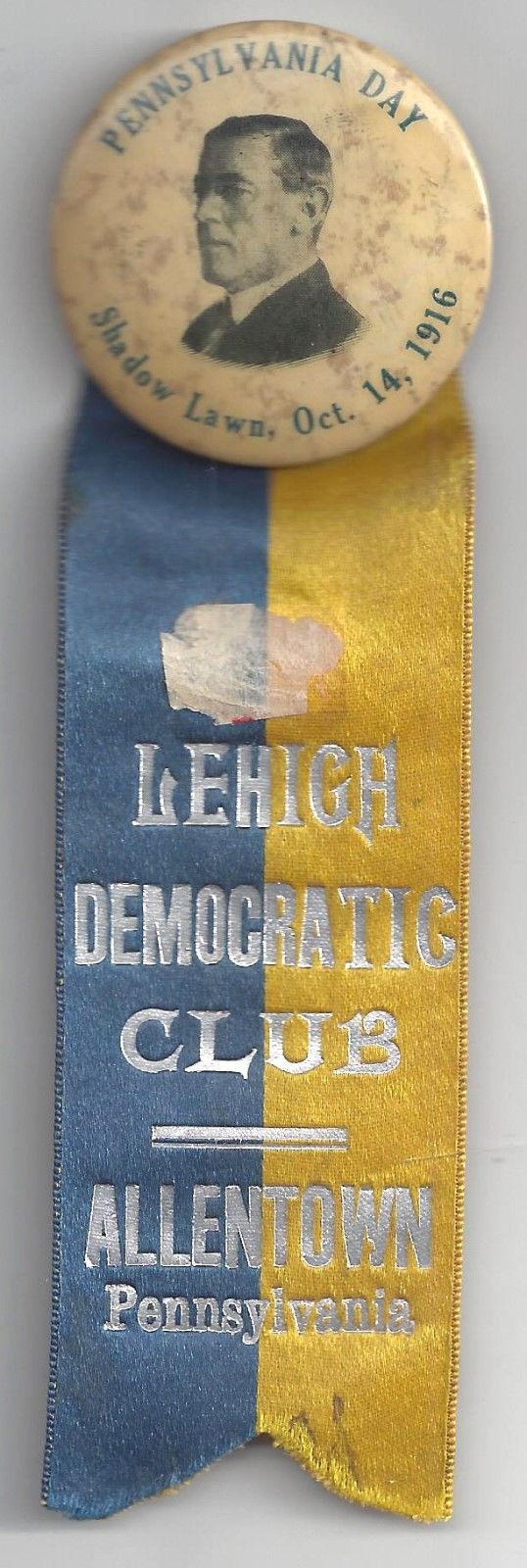 1916 WOODROW WILSON PENNSYLVANIA DAY - LEHIGH DEMOCRATIC CLUB PICTURE BADGE