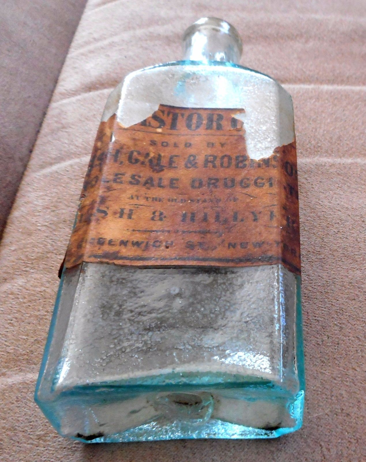 Title (ebay affiliate link): O.P. Bottle with Original Medicine Label:NY Druggist Greenwich St. Aqua, Mint.