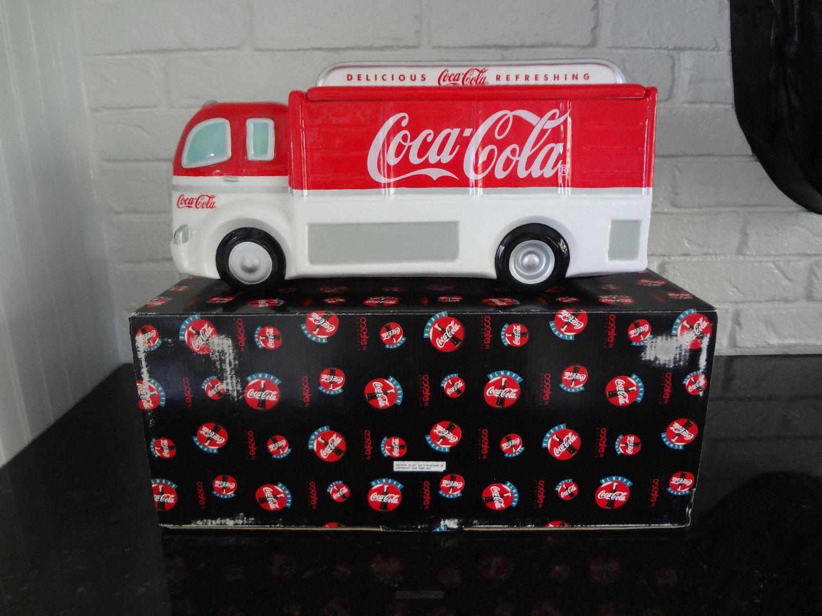 Title (ebay affiliate link): NIB COCA-COLA COKE MACHINE CAN BOTTLE DELIVERY TRUCK ENESCO COOKIE JAR CANISTER