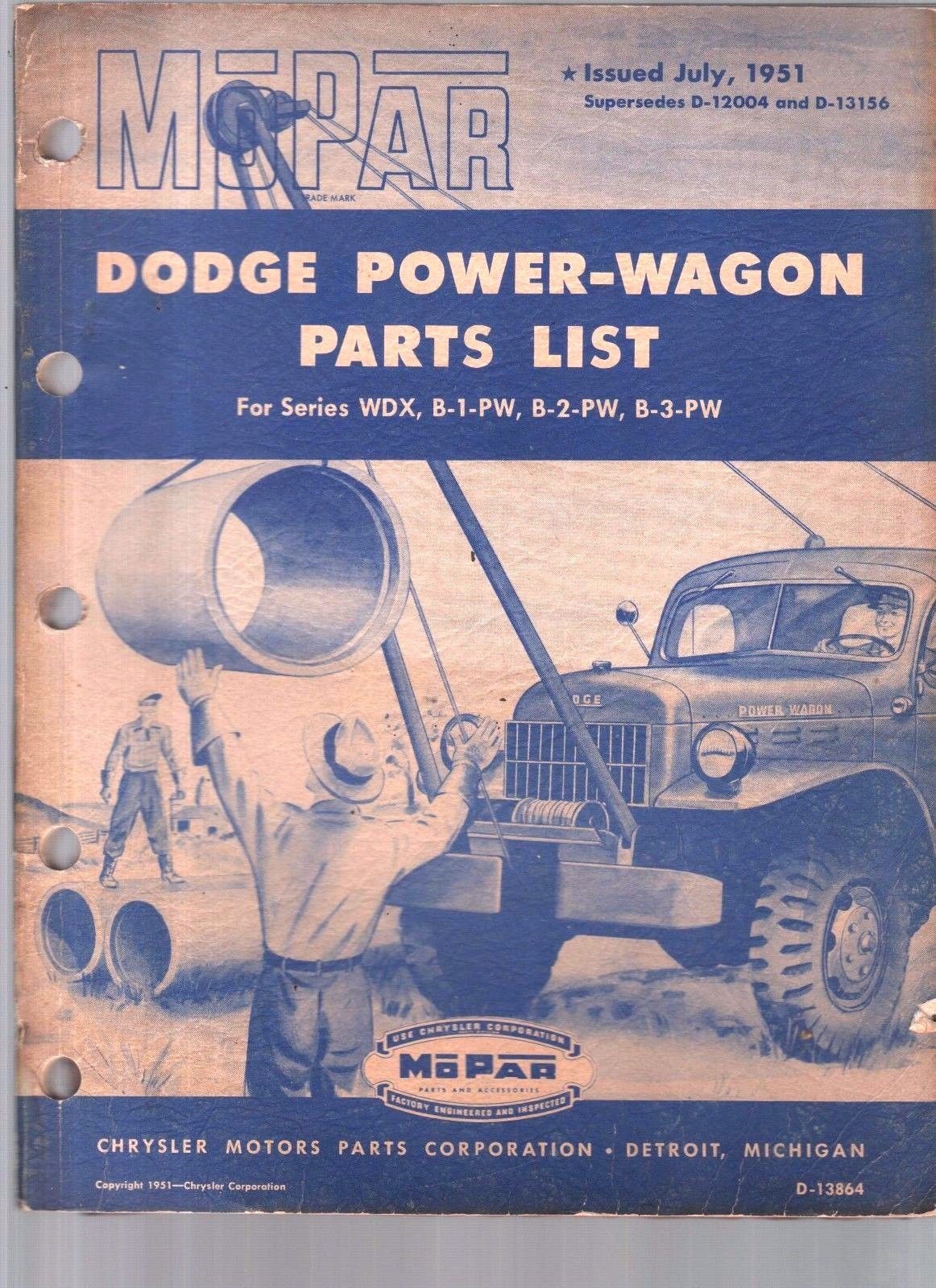 1947 1948 1949 1950 1951 DODGE POWER WAGON PARTS LIST MOPAR MANUAL ORIGINAL