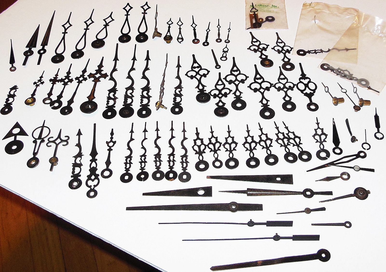 Title (ebay affiliate link): 80 Vintage & Antique Grandfather Mantle Serpintine Clock Hands Various Sizes