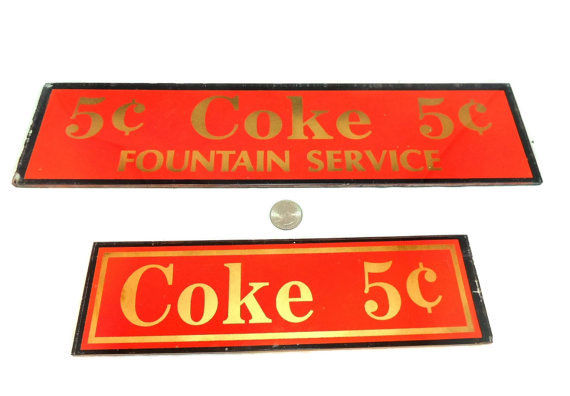 Title (ebay affiliate link): 1910 COCA COLA SODA FOUNTAIN SIGN SET,REVERSE GLASS & GOLD LEAF,16x4 & 10x3,RARE