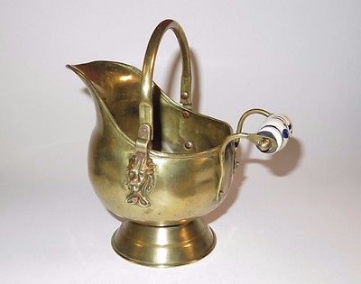 Title (ebay affiliate link): NICE VINTAGE SMALL BRASS COAL BUCKET WITH A CERAMIC HANDLE