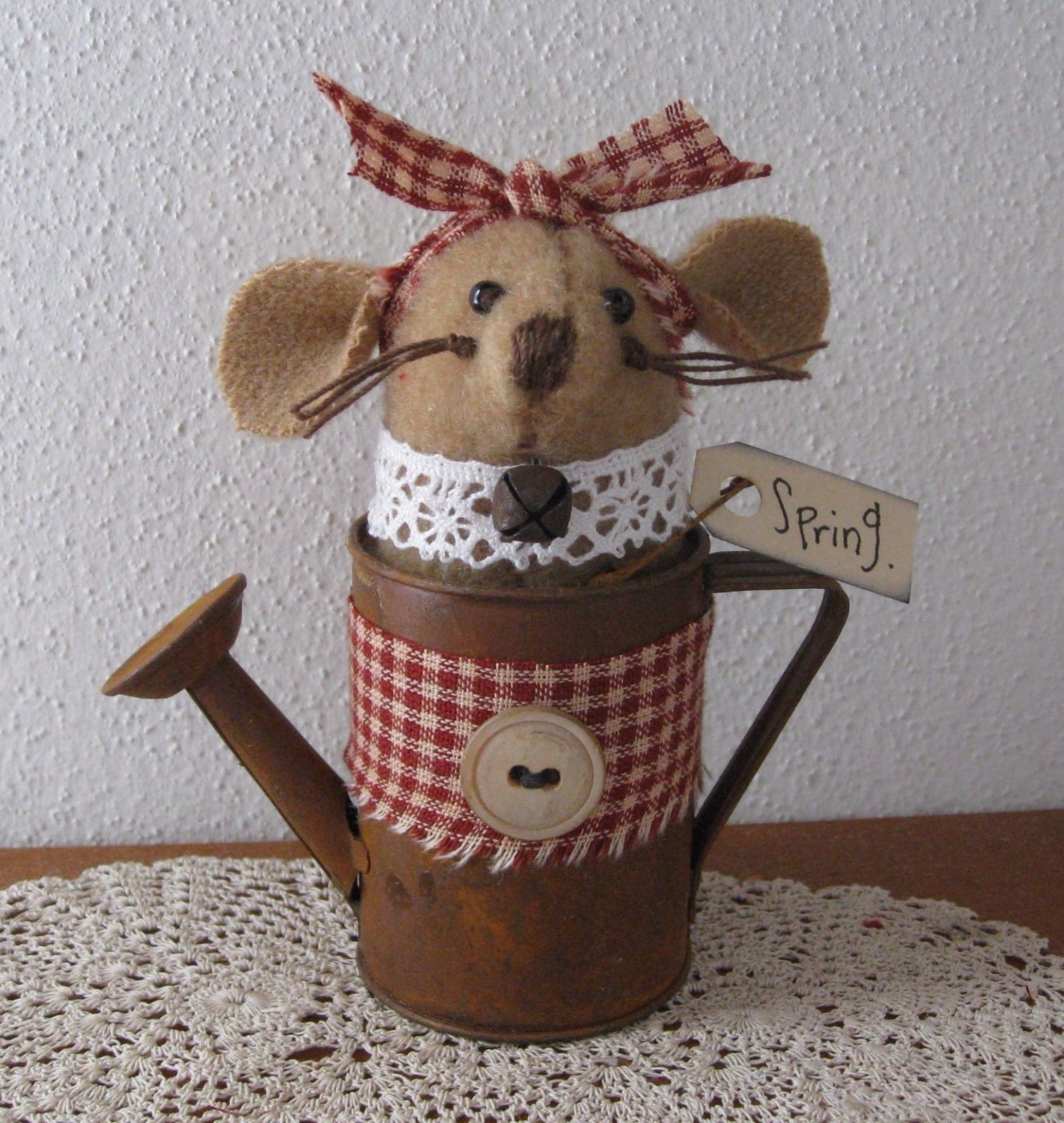 Title (ebay affiliate link): PRIMITIVE WOOL MOUSE RUSTY METAL WATERING CAN MAKE DO SHELF SITTER PFATT