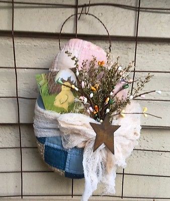 Title (ebay affiliate link): PRIMITIVE EASTER EGG - Vintage Quilt Door Greeter - Spring Country Hanger