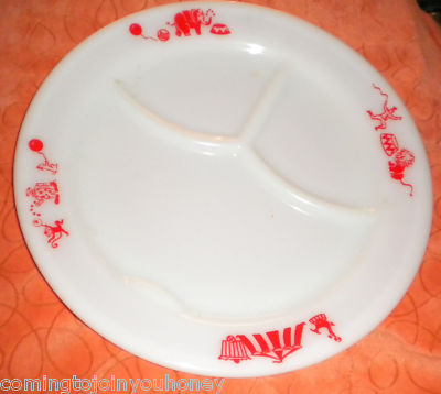 Pyrex Circus Milk Glass Divided Plate Mint Condition