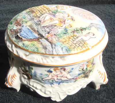 Title (ebay affiliate link): Vintage CAPODIMONTE Covered Box w/ Nudes & Cherubs !!!