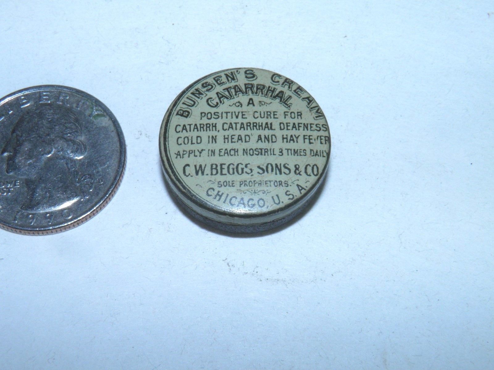 Title (ebay affiliate link): Antique Sample Tin Busen''s Catarrhal Cream C.W. Begg''s