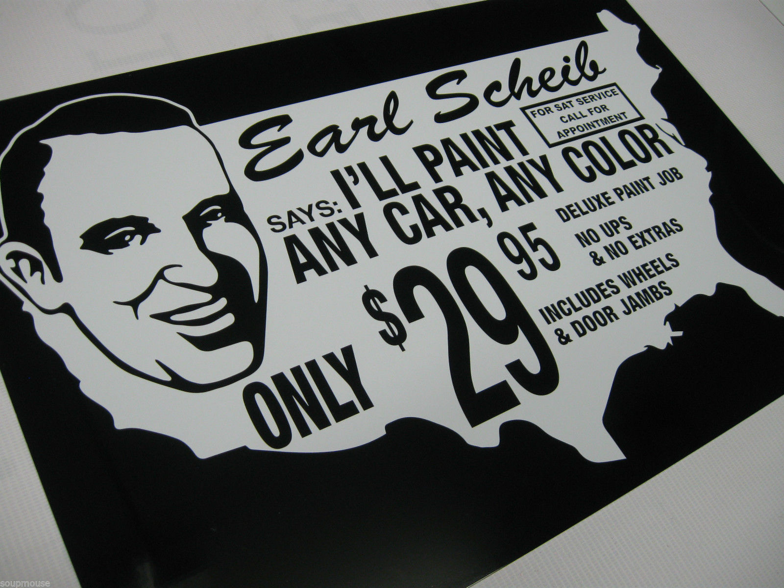 Vintage,50''s 60''s 70''s Earl Scheib,Auto Painting,12x18,Black,Alum,Sign