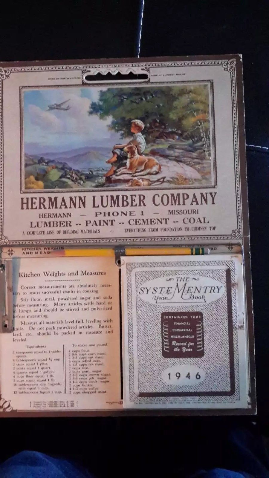 Title (ebay affiliate link): 1946 Herman Lumber Company Advertising Calender, Missouri Depicting Boy and Dog