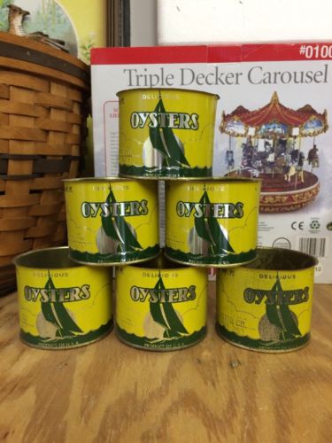 Title (ebay affiliate link): 6 Milbourne Oyster Co. oyster tin Not Crabmeat 12 oz. can Crisfield MD. 203