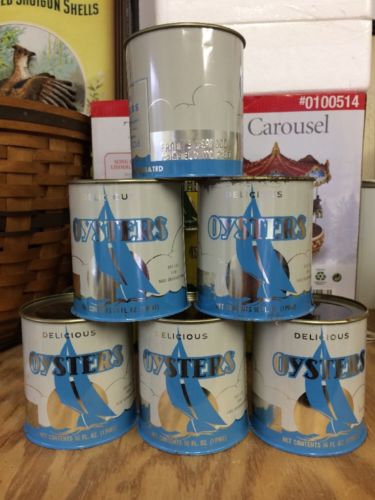 Title (ebay affiliate link): 6 Delicious Oysters Blue Sailboat Franks Seafood Crisfield MD 16 Oz Pint Tin Can