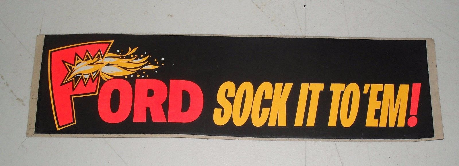 VINTAGE FORD BUMPER STICKER " FORD SOCK IT TO EM!" GAS AND OIL MAN CAVE STICKER