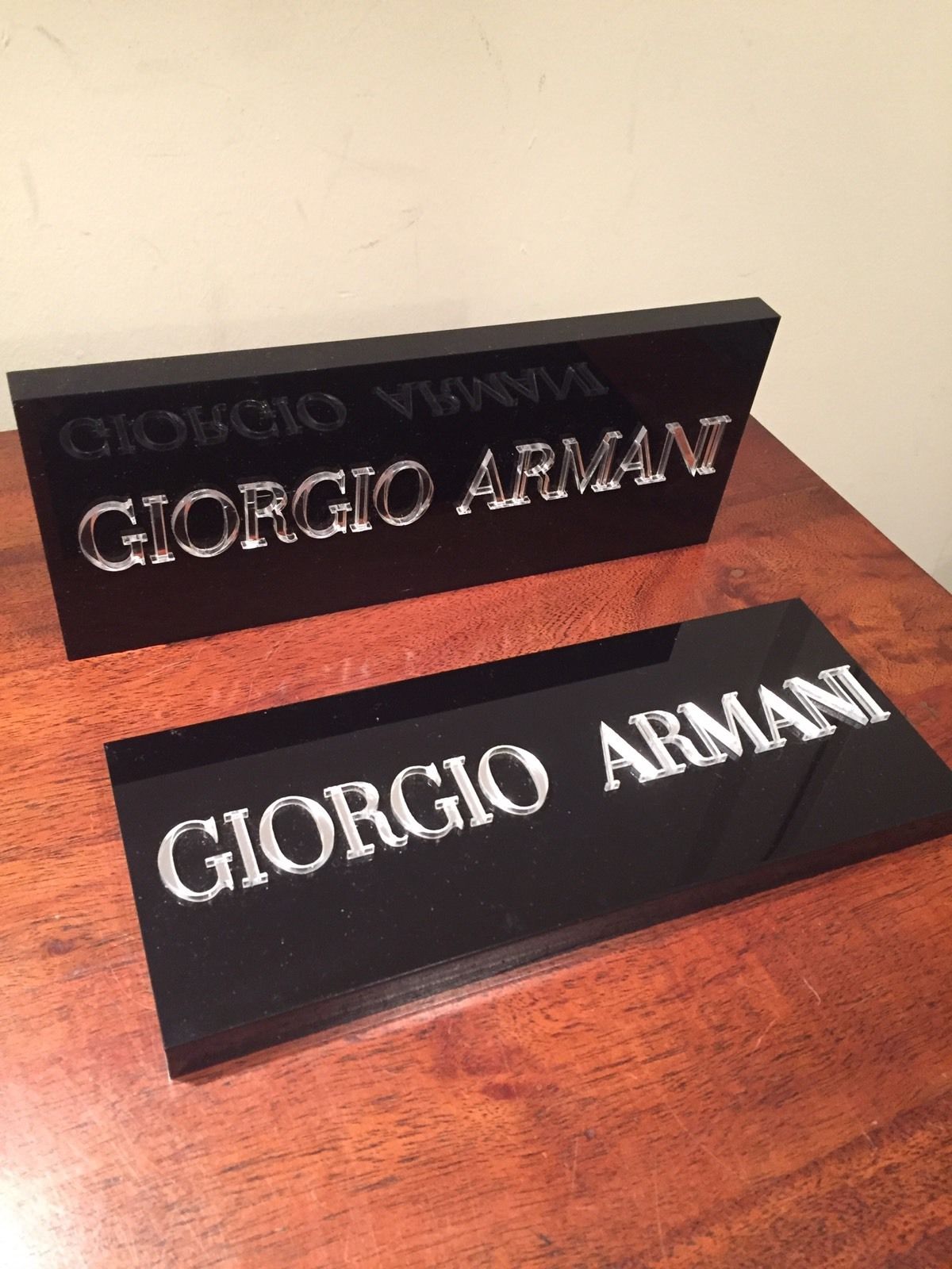 GIORGIO ARMANI Logo Plaques Shiny Black Signs Advertising Display