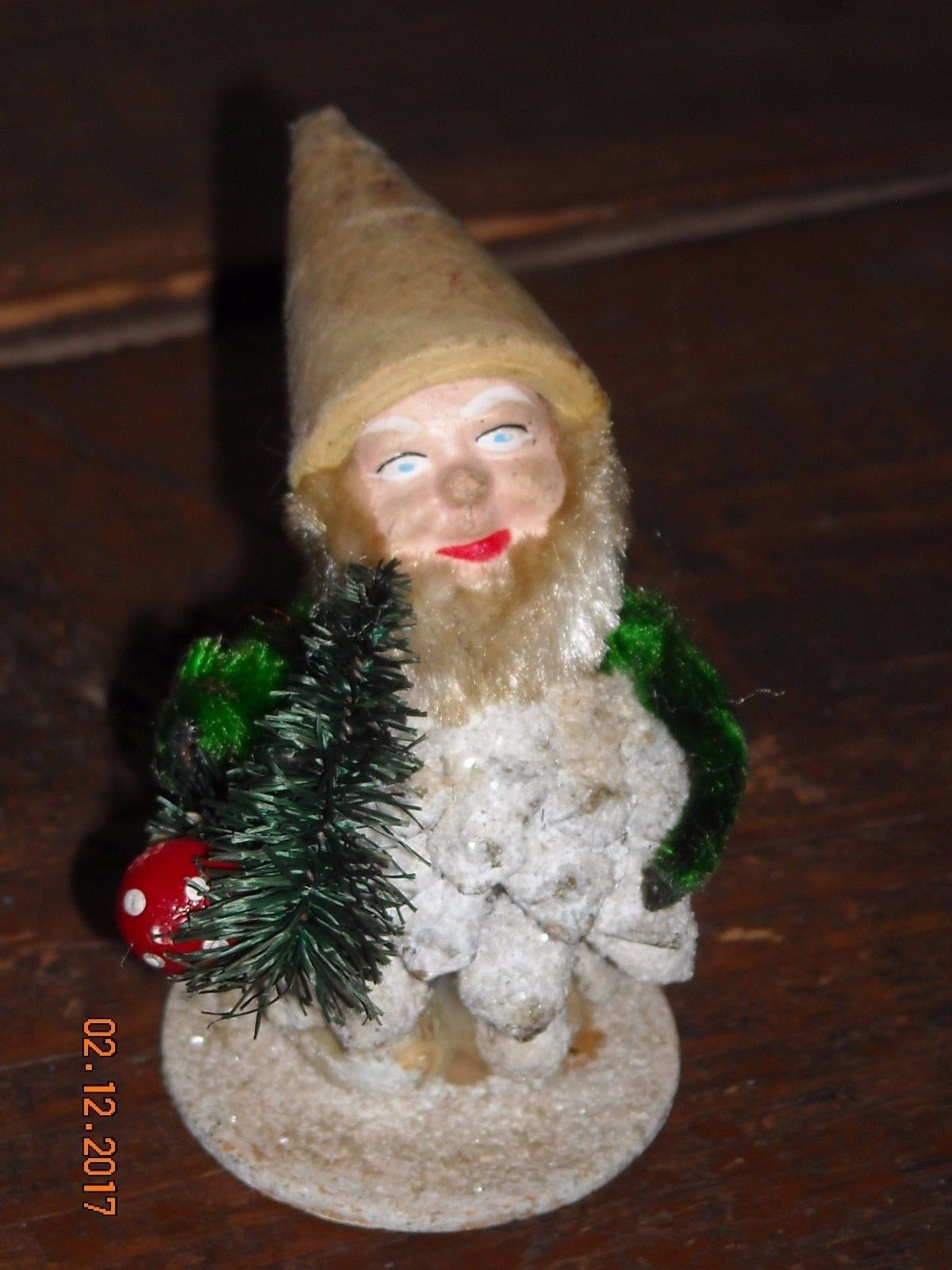 Title (ebay affiliate link): Vintage Late 1940s Composition Spun Cotton West German Pinecone Elf
