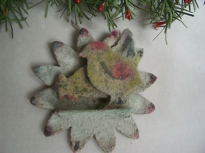 Title (ebay affiliate link): early german cardboard chicken & hen christmas ornament covered with glass sand