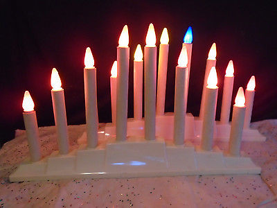 2 CANDELABRAS C-6 LIGHTS HARD PLASTIC BASE 8 CANDLE LIGHTS MADE BY "GEM"