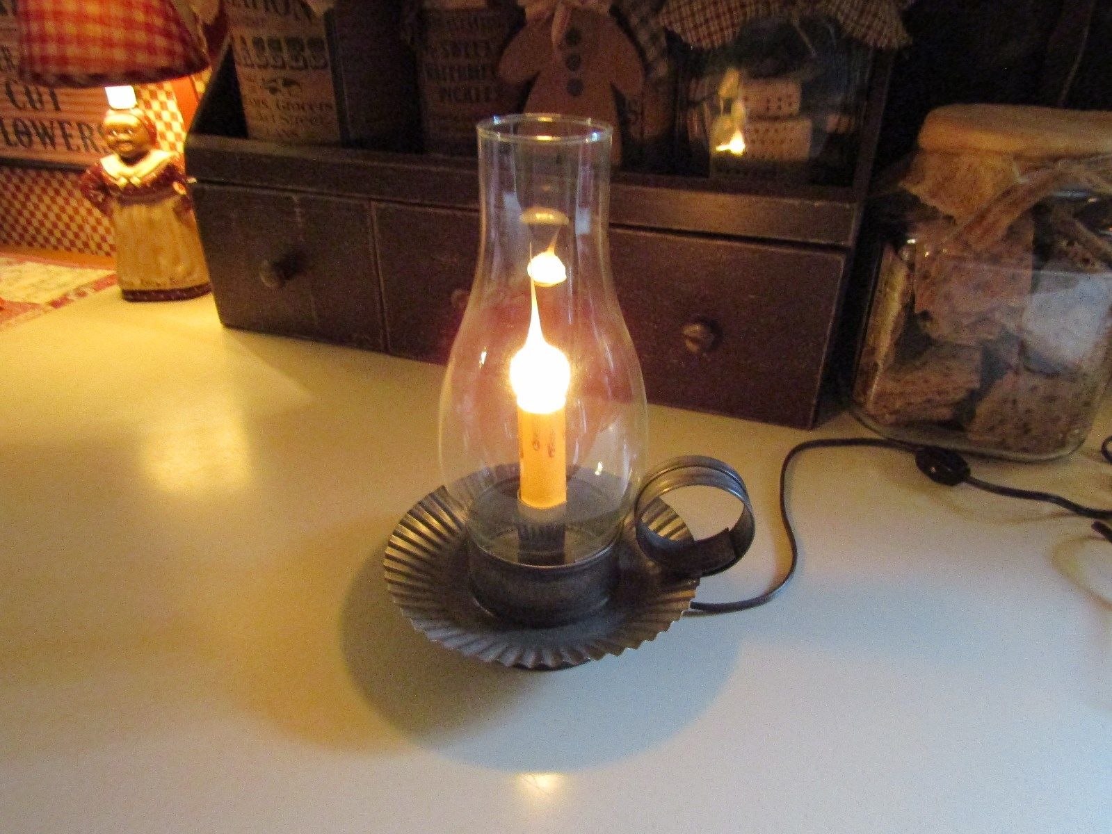 Title (ebay affiliate link): ELECTRIC TIN CANDLE LAMP W/GLASS GLOBE-ON/OFF SWITCH ON LONG CORD, WAXY BULB